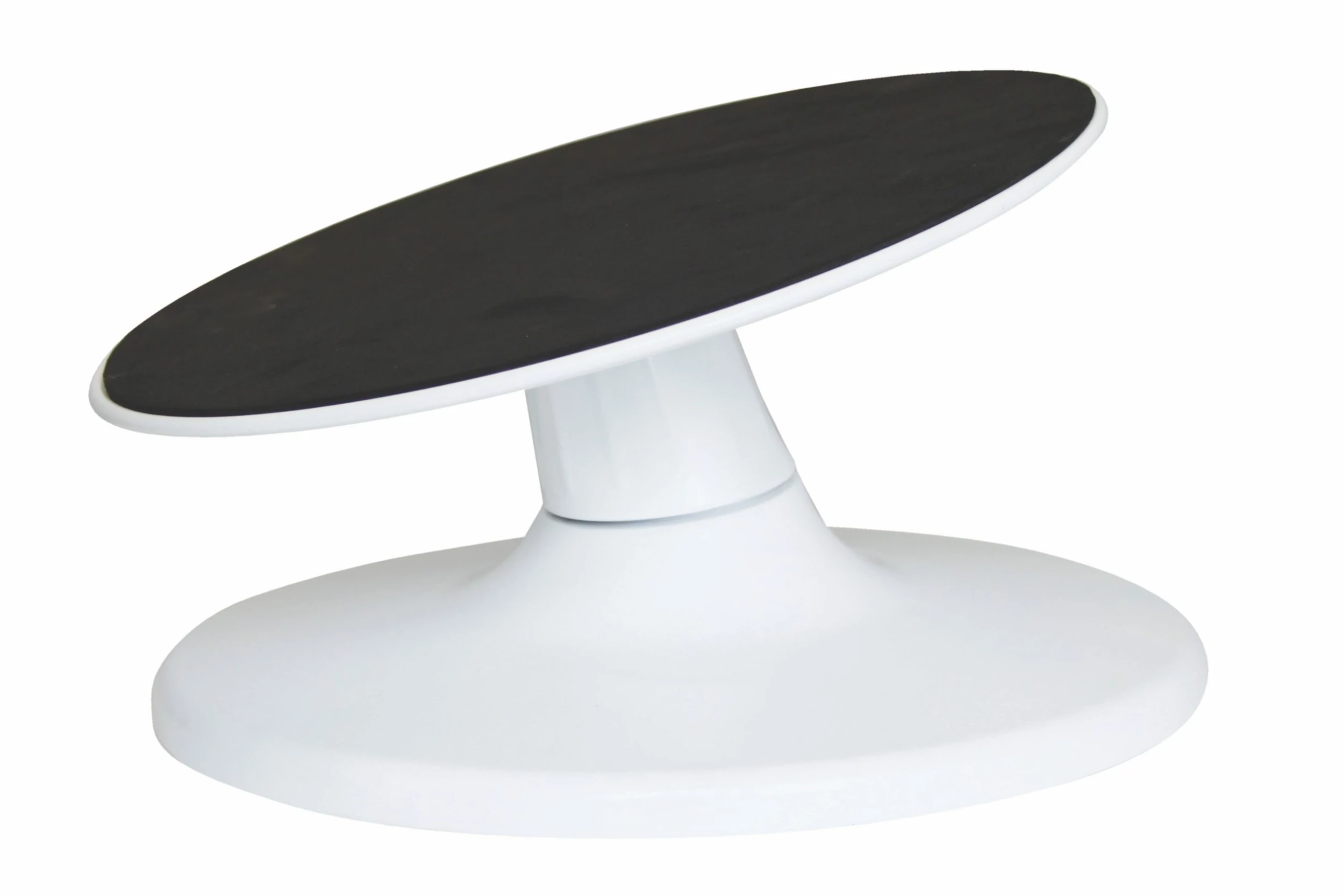 Dreh- und schwenkbare Torten- und Dekorierplatte aus Melamin.